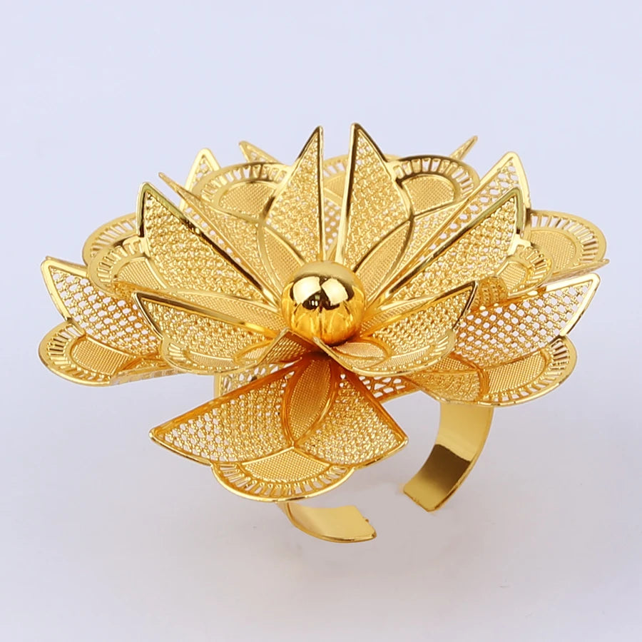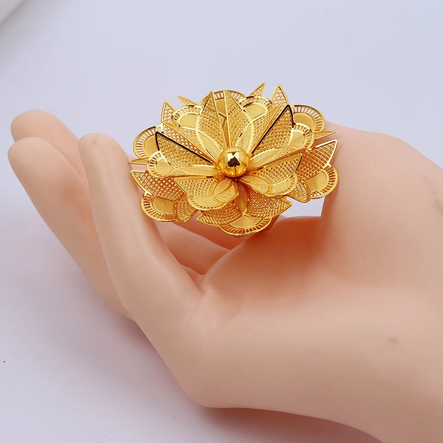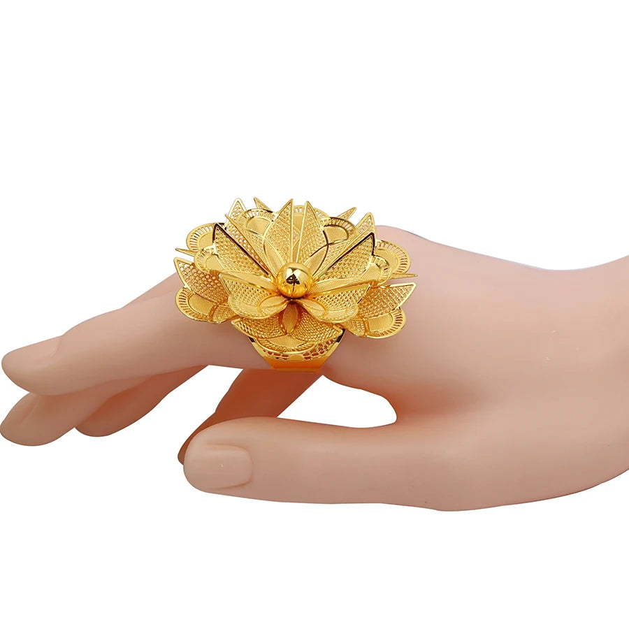 Elevate your accessory game with our Dubai Gold Plated Flower Ring for Women. This exquisite piece features a beautifully crafted flower design that captures the essence of elegance and femininity. Made from high-quality materials and plated in radiant gold, this ring is perfect for adding a touch of sophistication to any outfit. Whether you're dressing up for a special occasion or looking to enhance your everyday style, this flower ring is a stunning choice that embodies both charm and grace.